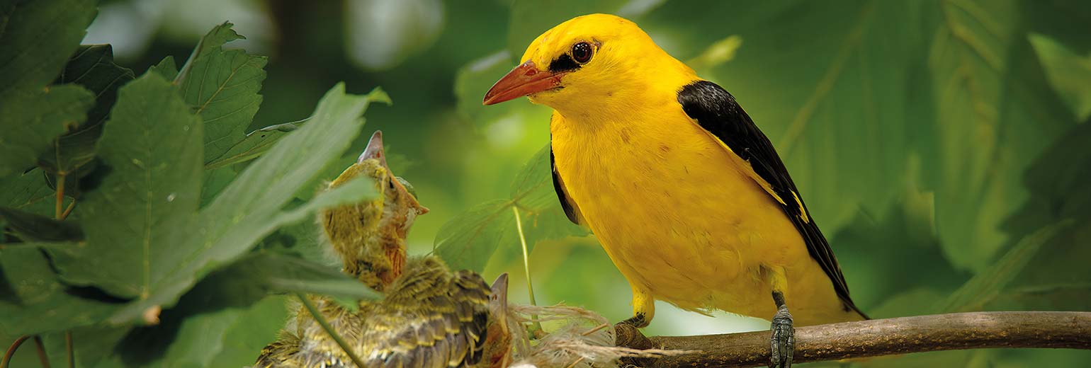 De la taille d’un merle, le loriot affiche un corps jaune, un bec rouge et des ailes noires caractéristiques. Devenu rare en Wallonie, cet oiseau migrateur trouve ici les peupleraies qu’il affectionne particulièrement. |