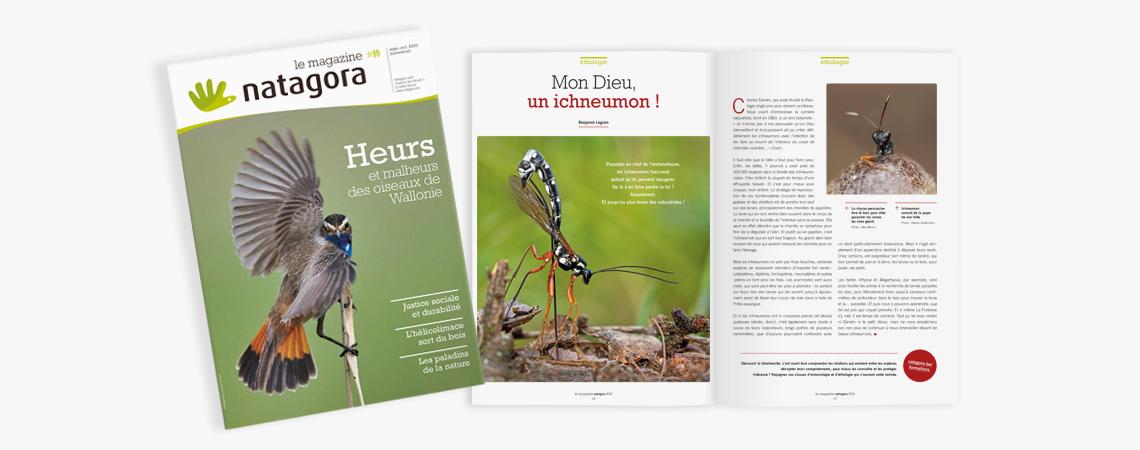 Publié tous les deux mois, le magazine Natagora tient les membres informés des actualités de leur association. Mais il propose également de nombreux articles accessibles de découverte de la nature wallonne et bruxelloise et propose des pistes de réflexion sur la protection de la biodiversité. Une grande place est laissée à la photographie de nos espèces indigènes. Le P’tit Natagora est la partie du magazine qui s’adresse aux plus jeunes et leur propose des activités, des recettes et du contenu vulgarisé. Le magazine est également disponible en version numérique.