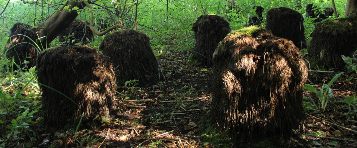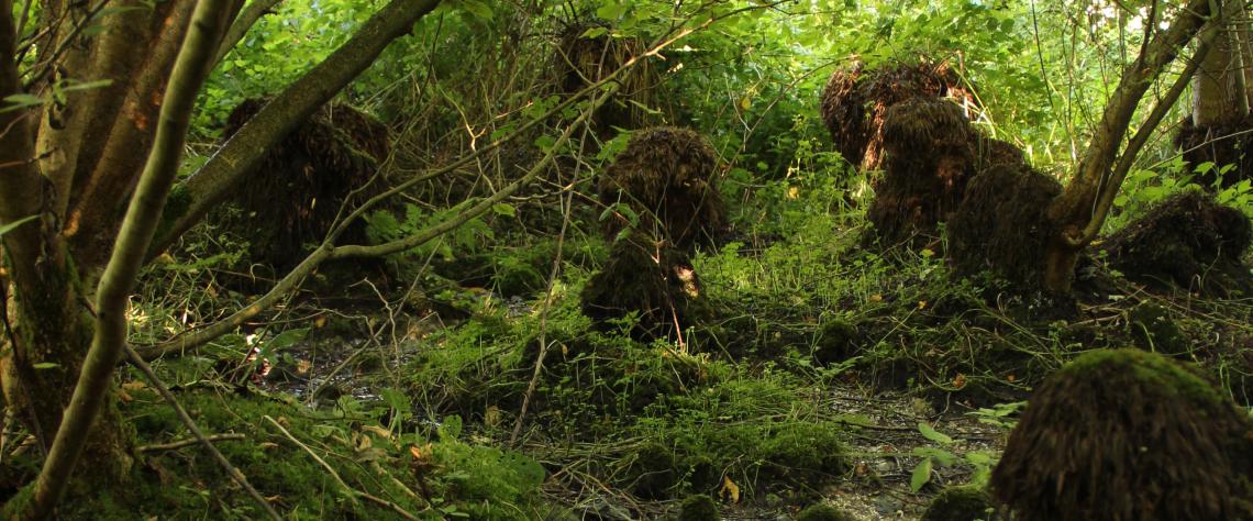 Plus loin, un étonnant spectacle se dévoile dans un taillis de noisetiers : un cimetière de touradons. Continuellement à l’ombre, des dizaines de buttes semblent mortes. En enlevant les ligneux, l’arrivée de lumière redonnerait certainement vie à ces étranges structures végétales. Il manque cependant de volontaires pour procéder aux travaux. Avis aux amateurs…