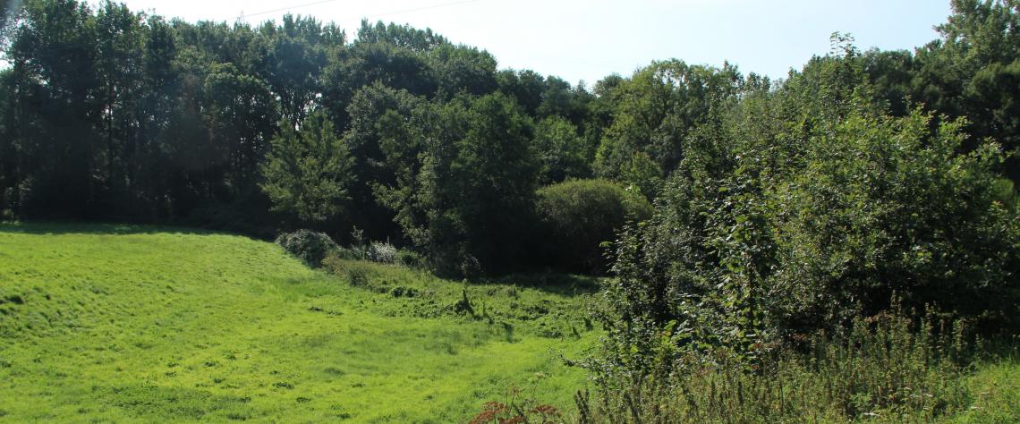 Mitoyennes à une culture de céréales, ces haies jouent un rôle important de barrière pour les engrais et pesticides qui auraient vite fait de dévaler la prairie et de la transformer en champ d’orties. Au pied de la pente se trouve l’intérêt botanique du lieu : plusieurs touradons de laîche paniculée, grosses buttes végétales créées par des carex qui poussent sur leurs anciennes racines. Dans la partie gérée, où arbres et arbustes ont été enlevés il y a plusieurs années, les buttes sont coiffées de belles gerbes de plantes.