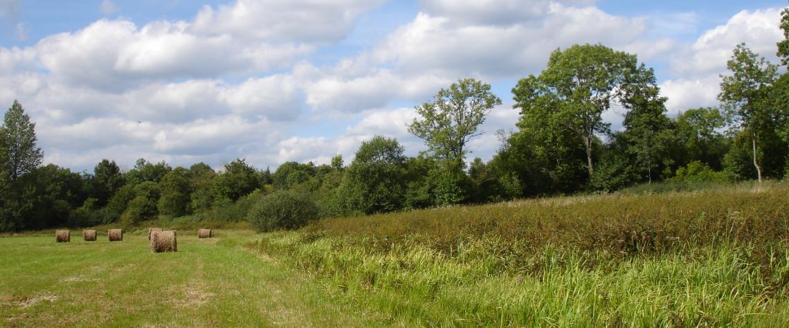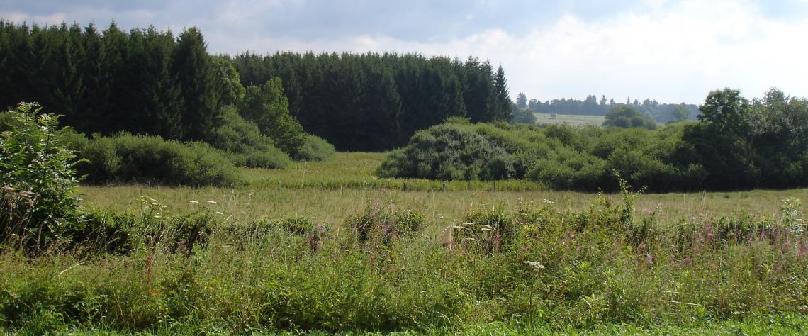 Enfin, plus en aval encore, un grand pré de plus de 8 ha s’étend au fond d’un chemin en cul-de-sac où s’éparpillent les dernières maisons du village. Une profusion de graminées de toutes les espèces rend le lieu remarquable pour le botaniste… et pour le bétail qui en profite bien ! Les insectes aussi adorent ce milieu de vie. Et pas moins de cent vingt espèces d'oiseaux, sédentaires, estivaux ou de passage y trouvent une table bien garnie !