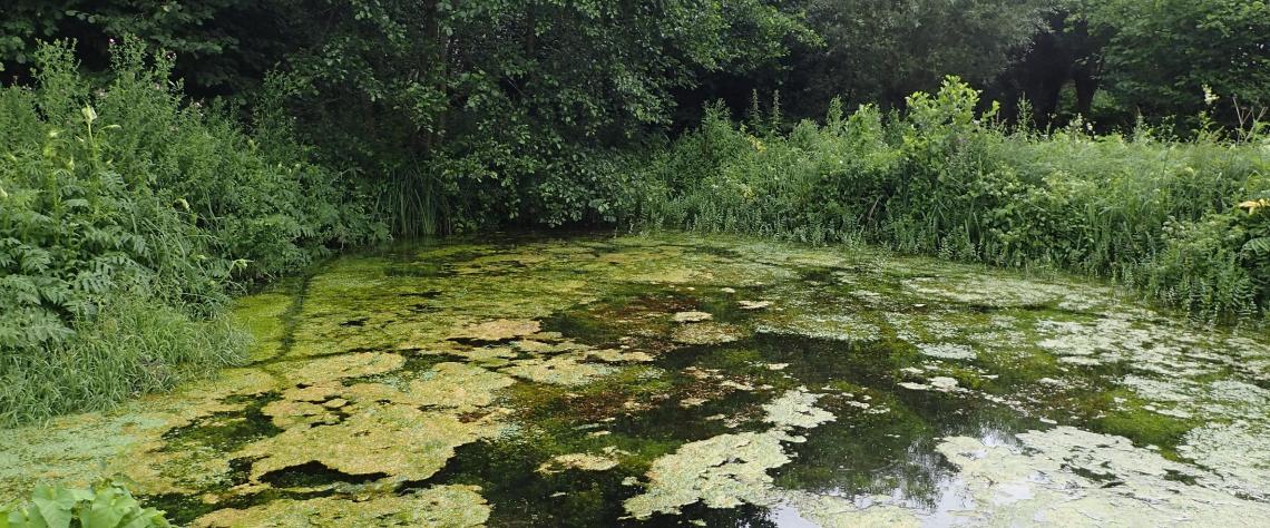 Deux belles mares, équipées d’un ponton d’observation de la faune et de la flore, hébergent un couple de poules d’eau. Égayés par le ballet incessant des demoiselles, ces points d’eau constituent un repère de choix pour la ponte des grenouilles rousses. La visite du refuge se termine au cœur de la prairie de fauche, où abondent les floraisons parfumées de la menthe aquatique et colorées de la fleur de coucou.
