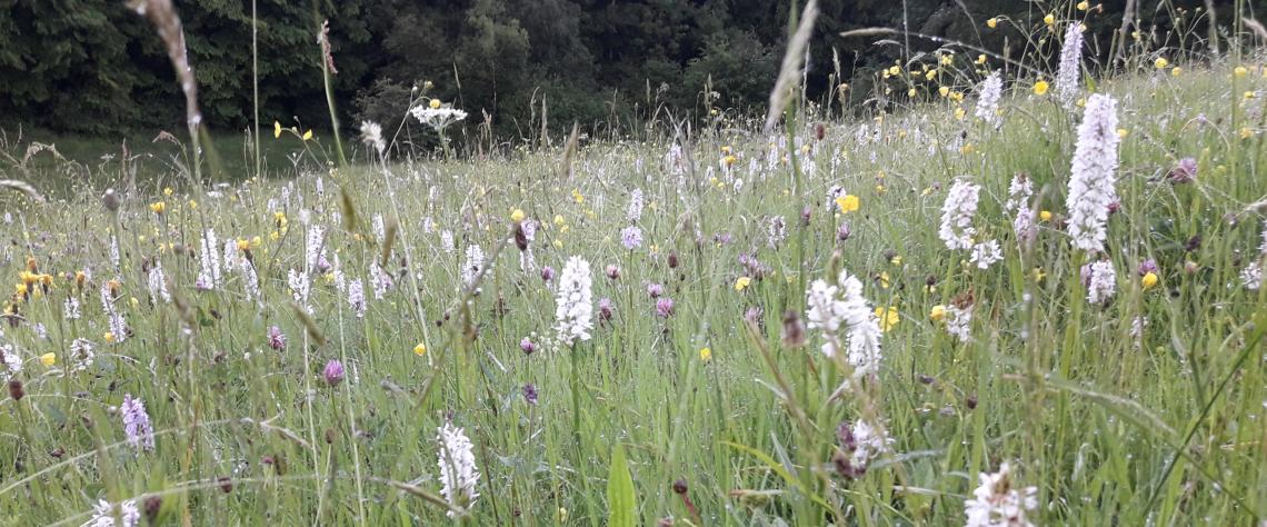 Les travaux ont également permis de convertir une ancienne plantation oubliée de sapins de Noël en prairie pour désenclaver l’ancienne prairie de fauche maintenue ouverte. Ce changement de paysage radical amère lumière et connectivité aux plantes et autres habitants de la réserve. En 2018, une grande parcelle communale voisine a pu être ajoutée à la réserve. Elle présente un grand intérêt biologique, paysager et patrimonial. La végétation de cette parcelle affiche un cortège très diversifié et fleuri avec notamment plusieurs espèces protégées dont deux orchidées (l’orchis tacheté et la platanthère à deux feuilles) et une rare sous-espèce de renoncule des bois.