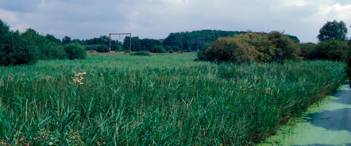 Encadrée d’aulnes et de saules têtards, la grande roselière occupe l’essentiel de la réserve, un territoire issu d'effondrements du sol provoqués par l’extraction souterraine du charbon. La réserve est composée d'un vaste étang d'une superficie de 10 ha et de deux types de milieux : la roselière de type sèche n’est inondée que lors des périodes hivernales et printanières ; le long des fossés et dans les creux inondés de façon permanente, la roselière humide est elle parsemée d’iris jaunes et de patiences d’eau, proches parentes des primevères.