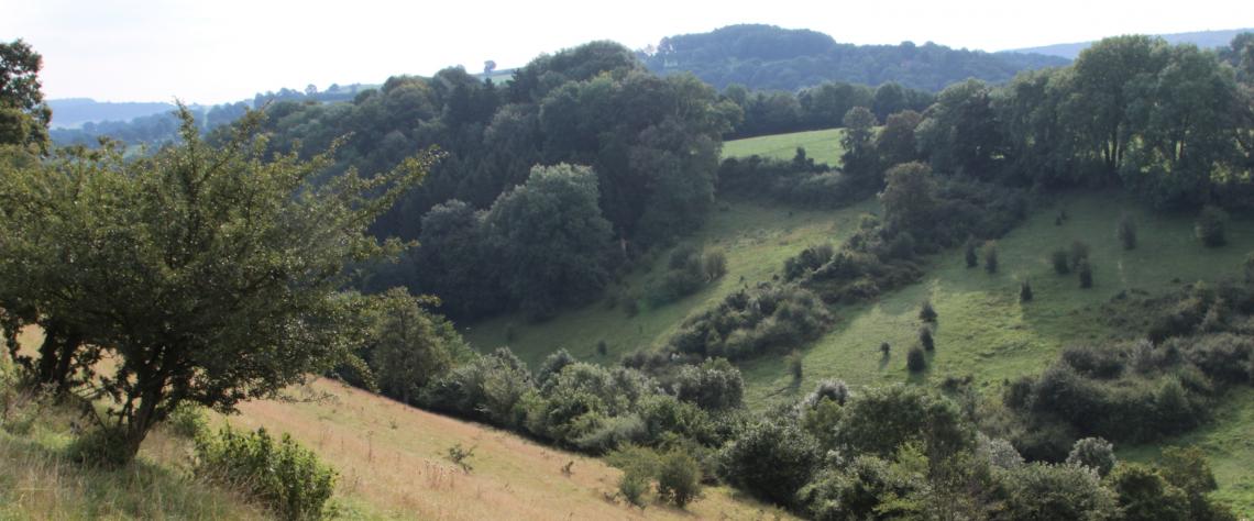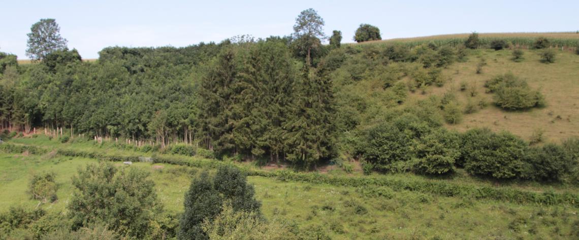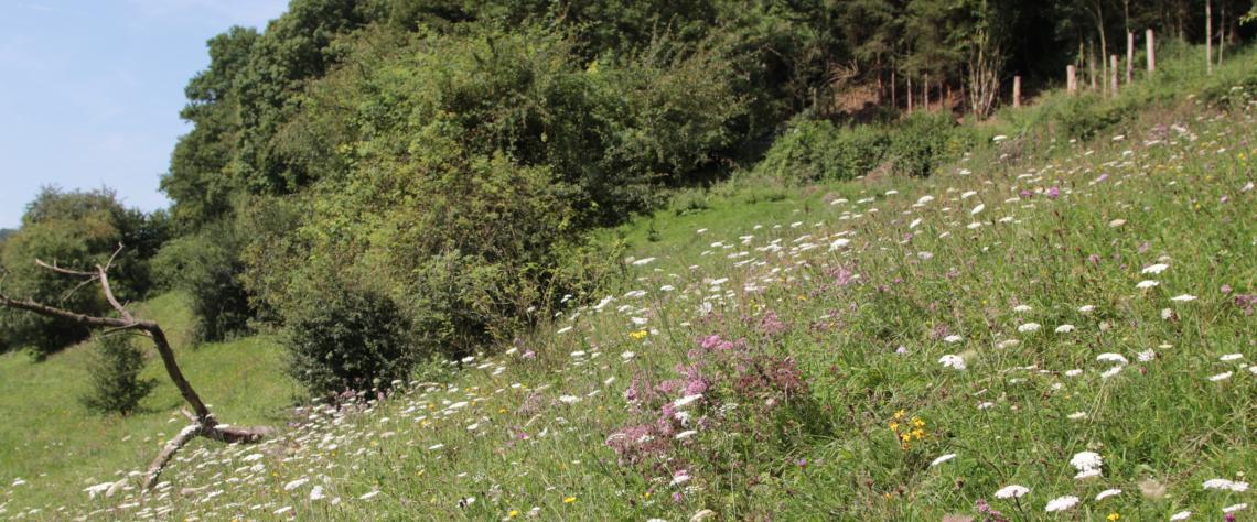 Le versant sud du vallon est occupé par une vaste pelouse calcicole, évoquant la Provence avec ses odeurs de thym et d’origan. Le versant opposé accueille un ensemble de prairies maigres où s’épanouit une flore qui tend à disparaitre dans le paysage environnant, sacrifié sur l’autel de l’intensification agricole. Le beau réseau de haies offre gîte et couvert à de nombreuses espèces animales et résonne au printemps du chant des oiseaux qui y ont trouvé refuge.